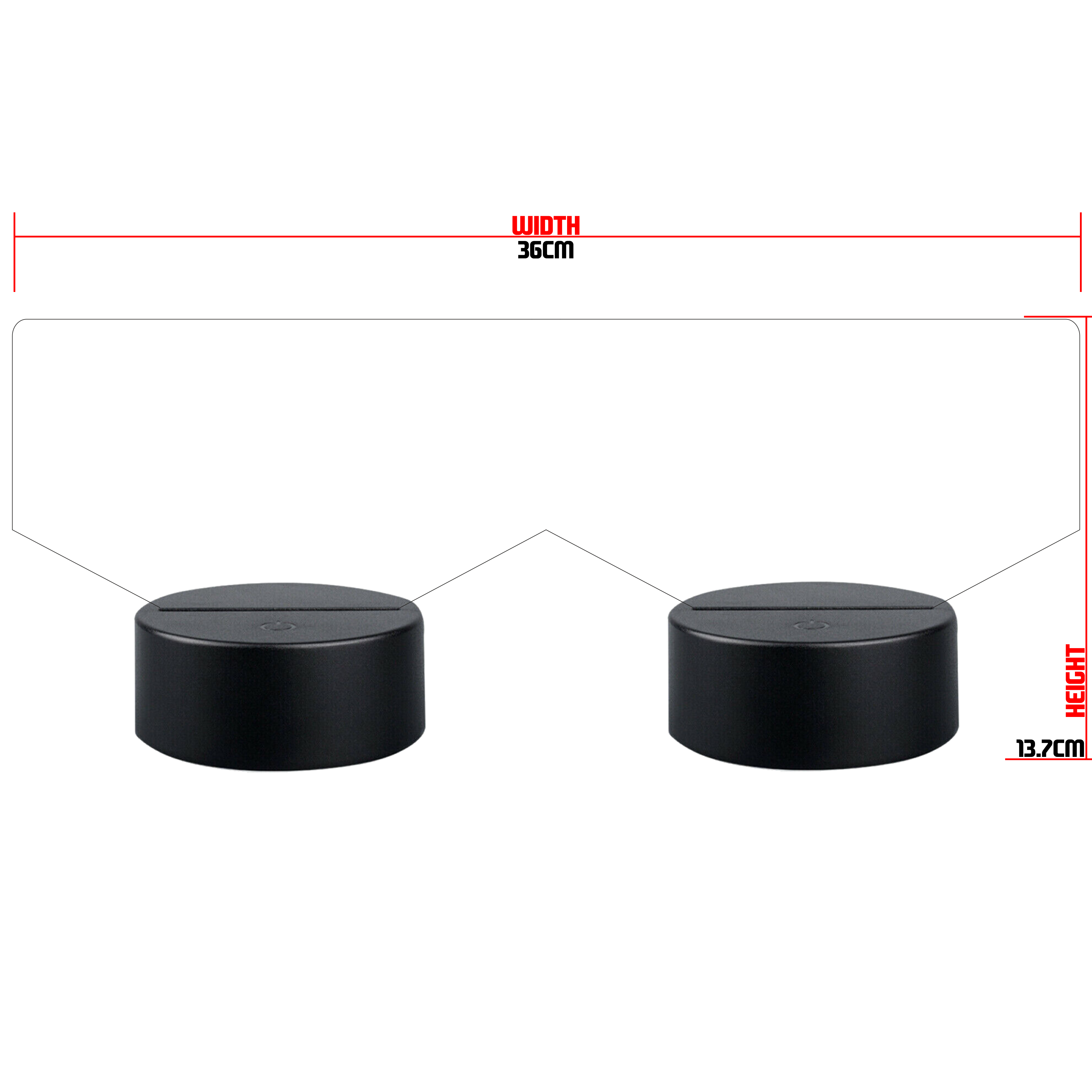 • Base + Acrylic: 13.7H x 36.0W x 9.5D cm