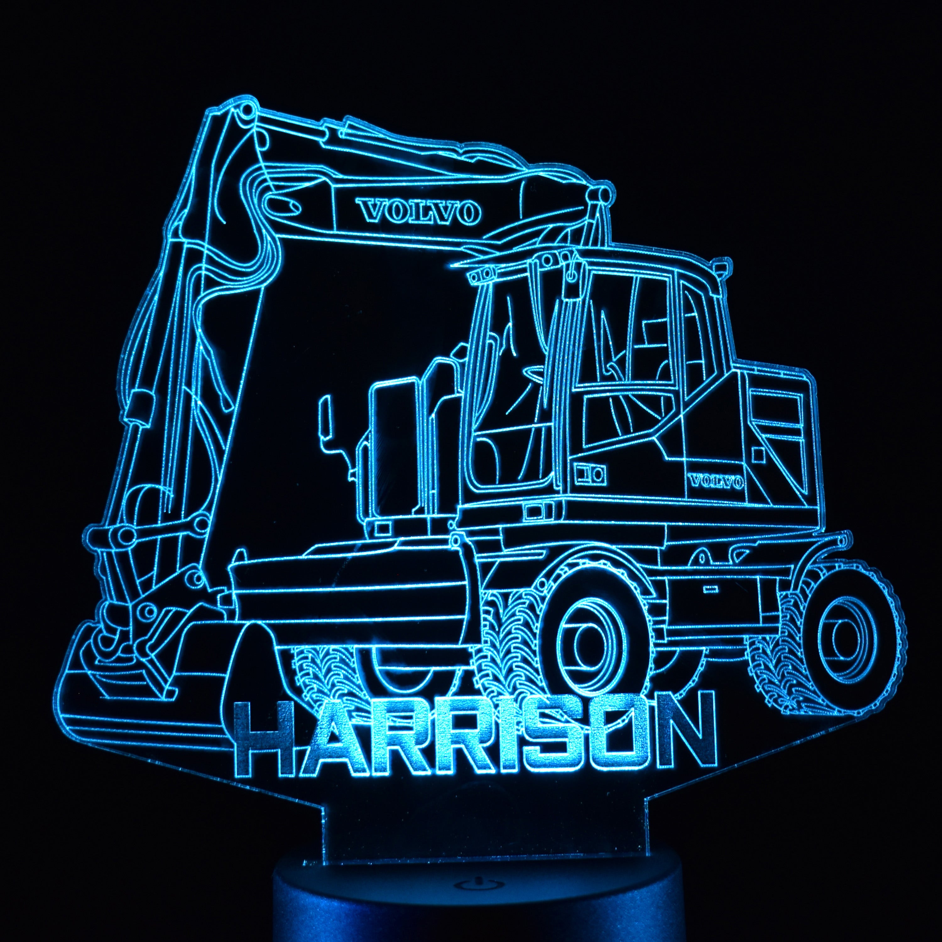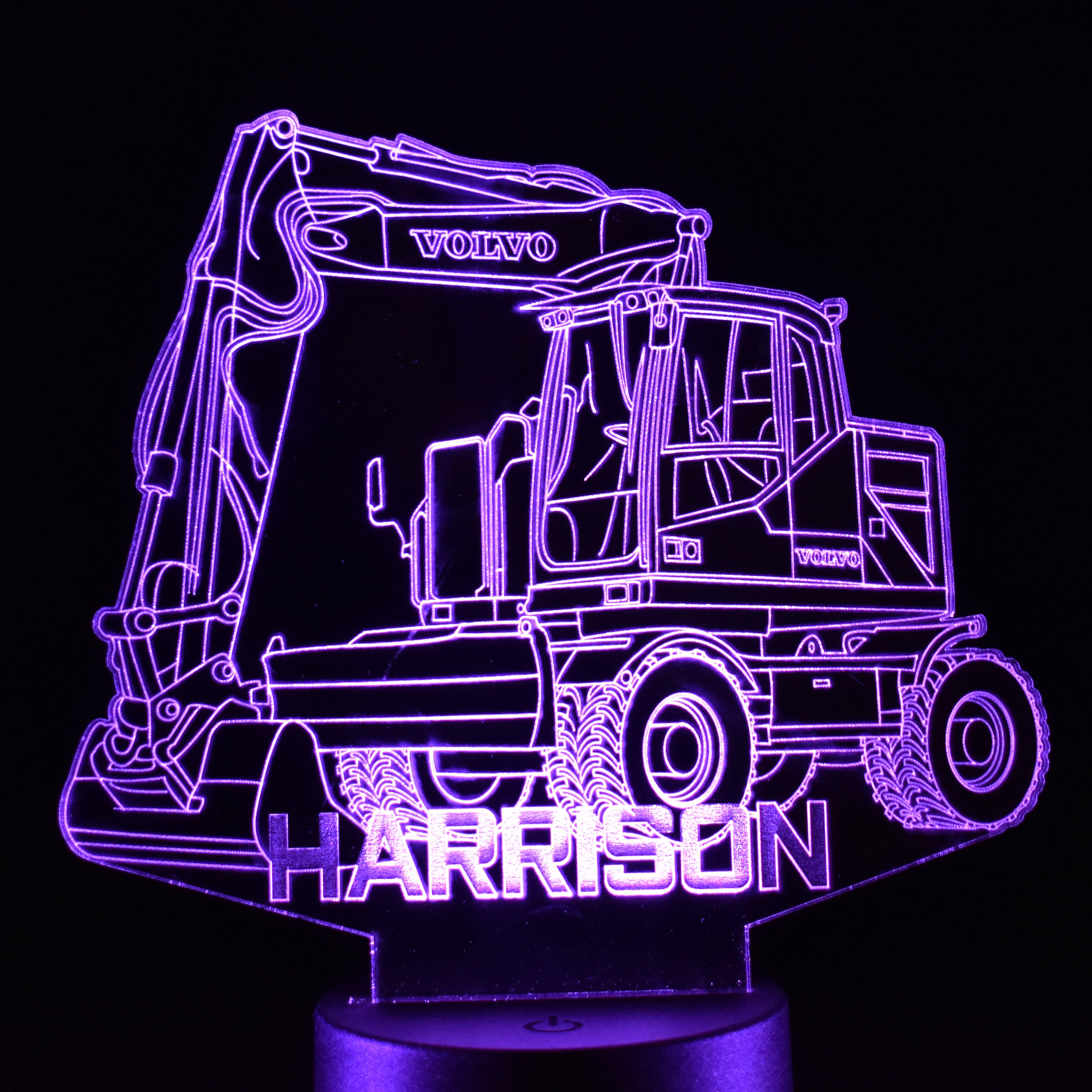 This digger design laser engraved night light is perfect for lighting any room. It has 16 colour options & different light modes that can be selected using the included remote control. The high quality tough clear acrylic is cut & engraved with our precision laser machine & lit with a circular LED base that can be powered by the micro USB cable included or with 3x AA batteries (not included).