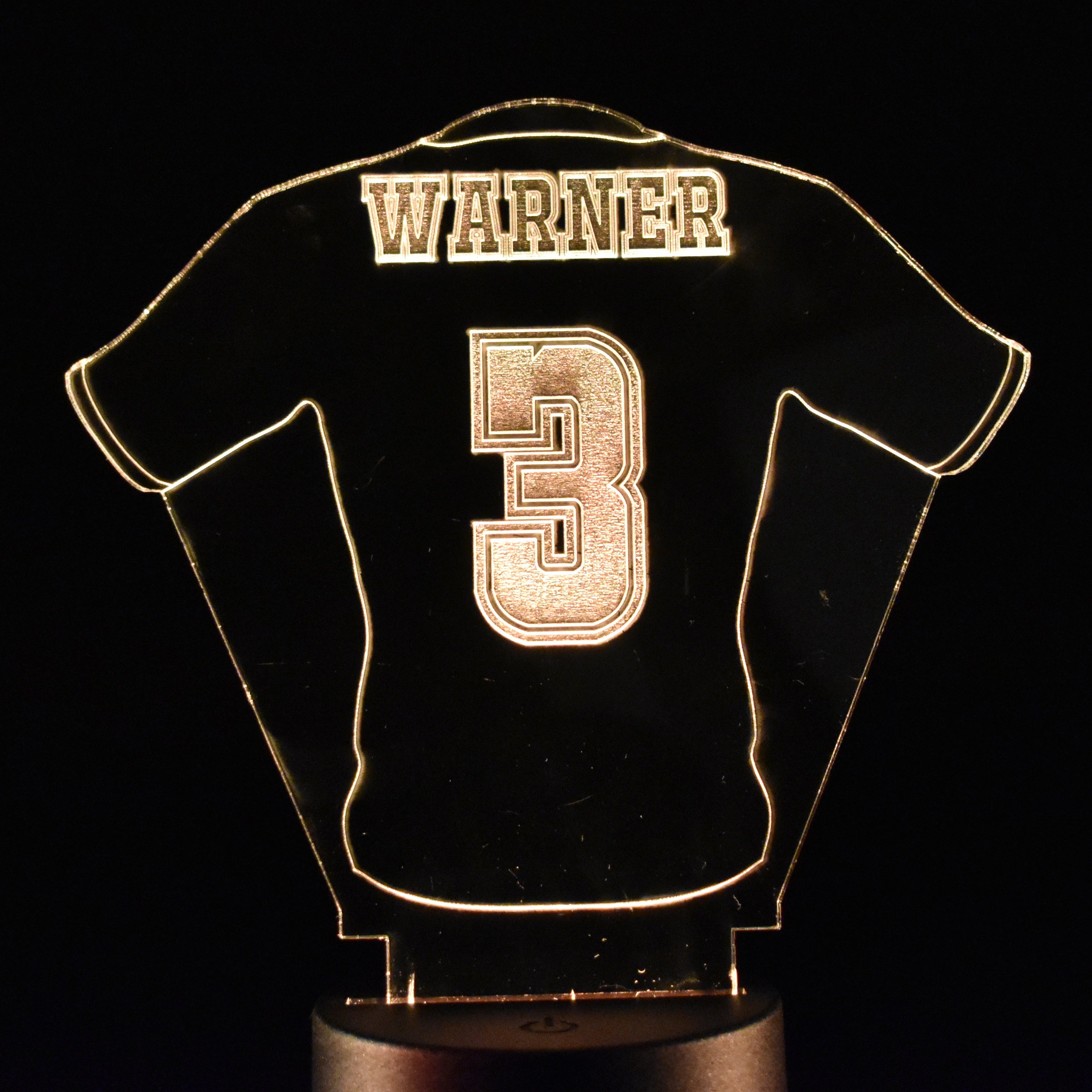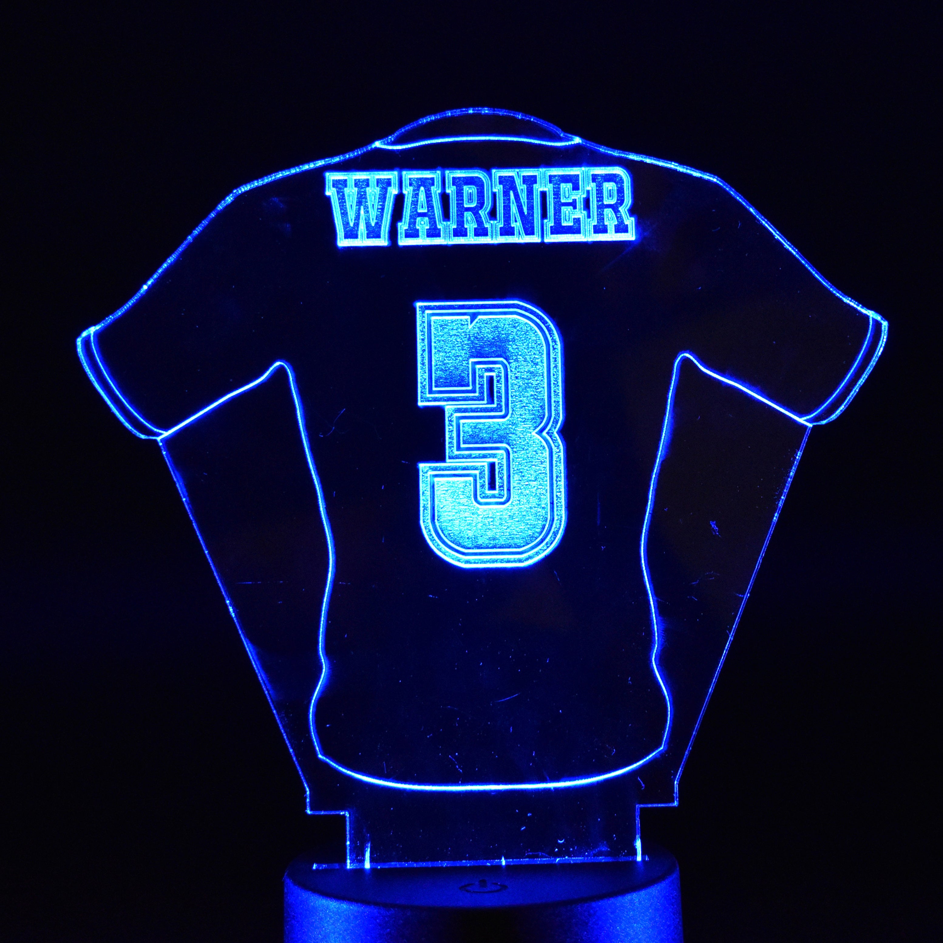 This football design laser engraved night light is perfect for lighting any room. It has 16 colour options & different light modes that can be selected using the included remote control. The high quality tough clear acrylic is cut & engraved with our precision laser machine & lit with a circular LED base that can be powered by the micro USB cable included or with 3x AA batteries (not included).