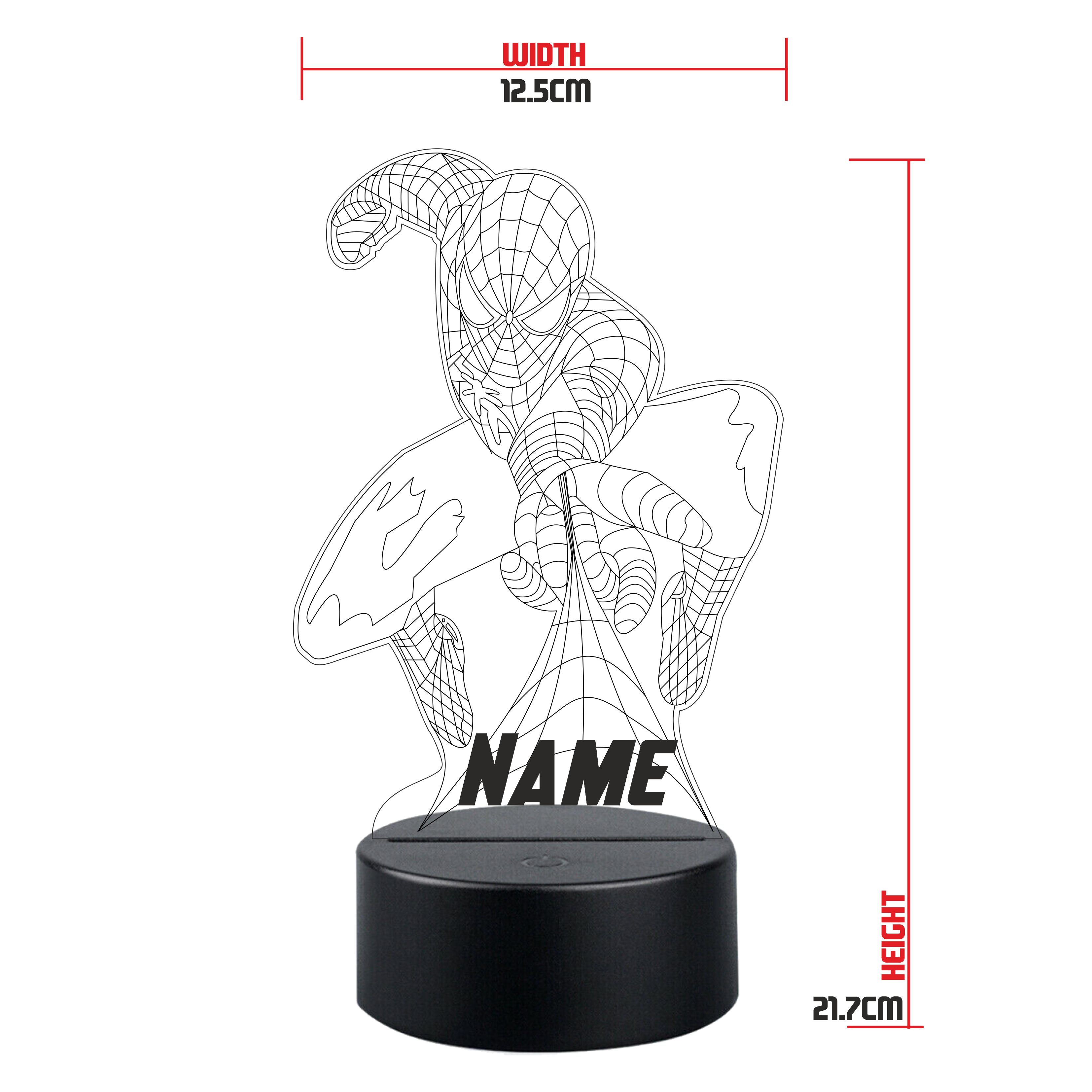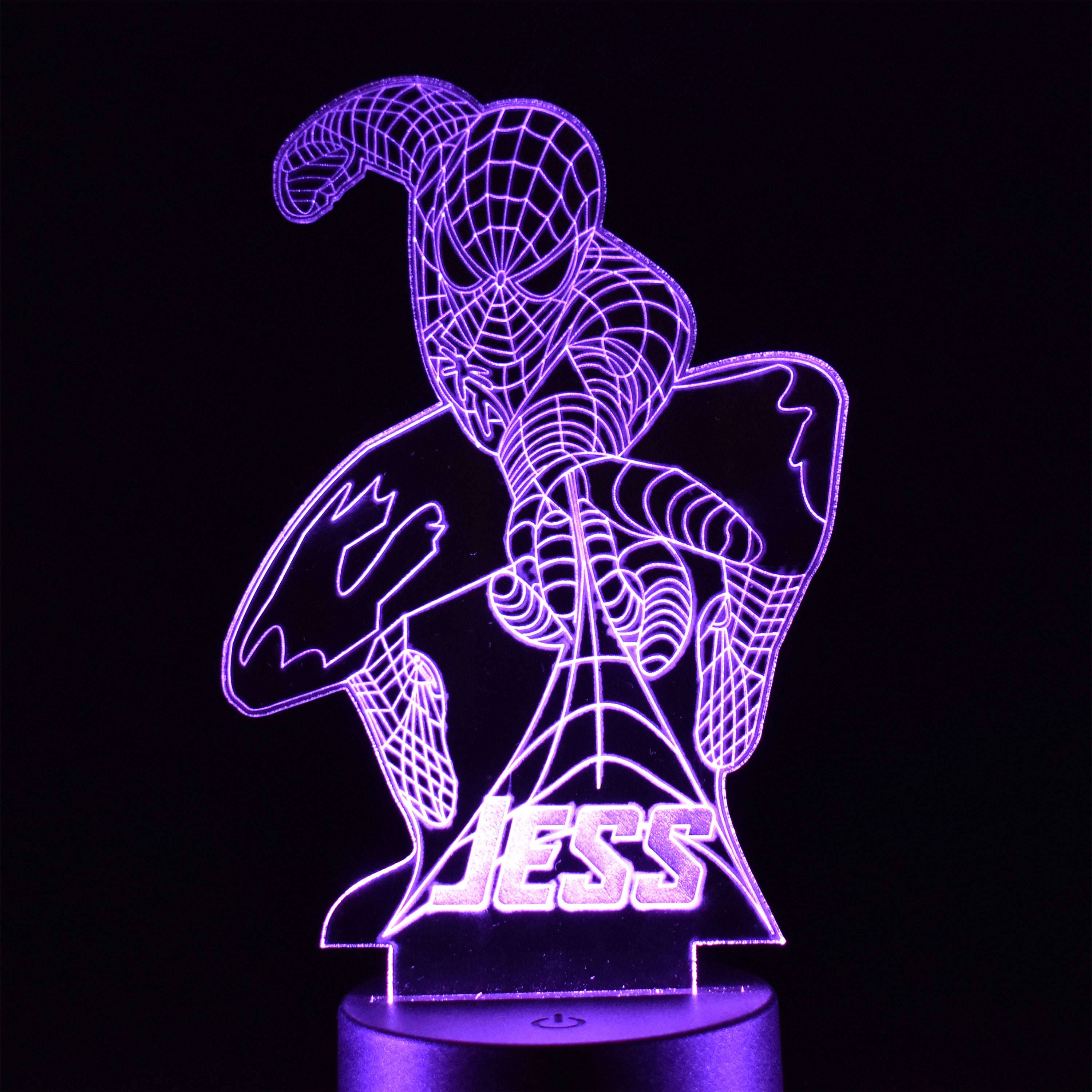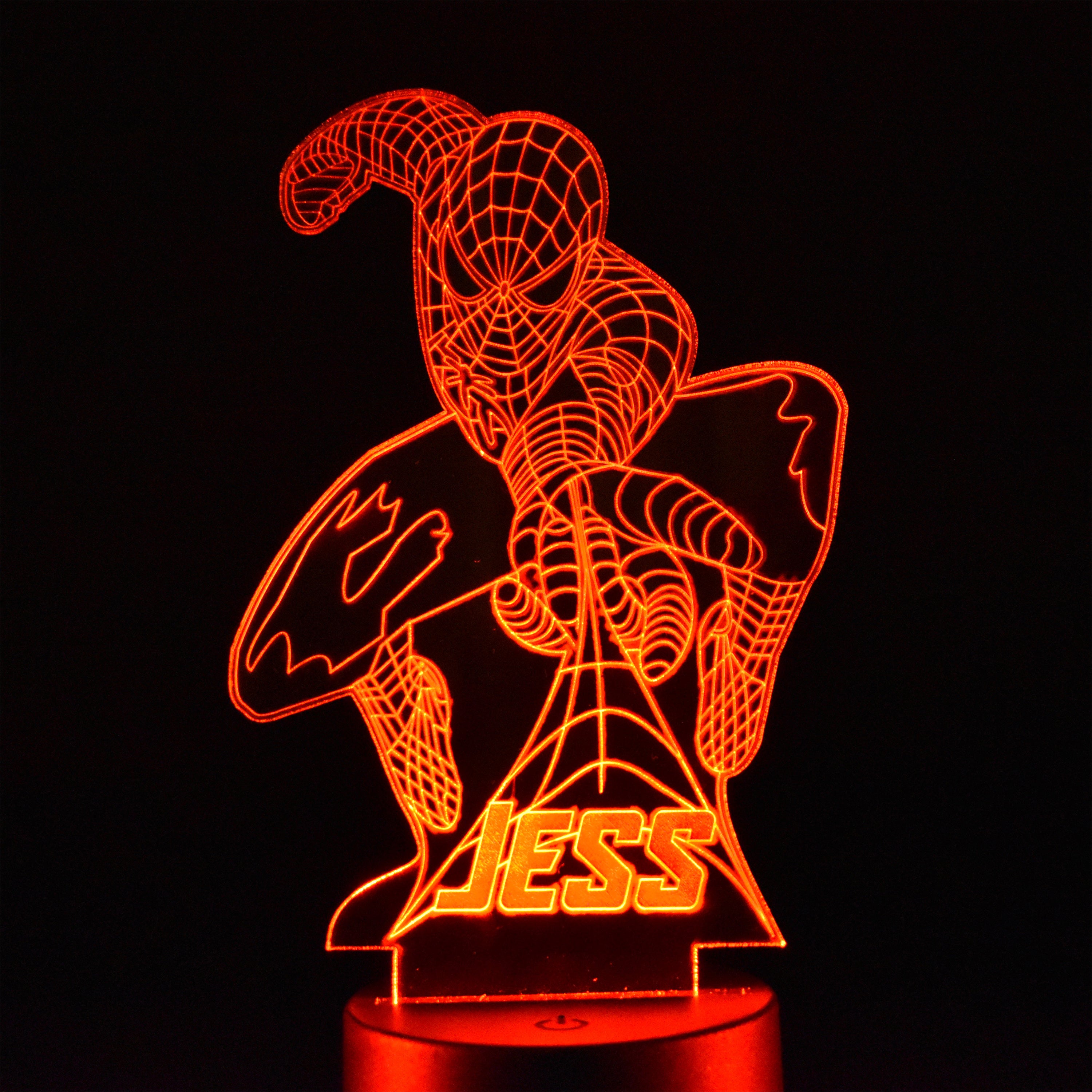 This Spiderman design laser engraved night light is perfect for lighting any room. It has 16 colour options & different light modes that can be selected using the included remote control. The high quality tough clear acrylic is cut & engraved with our precision laser machine & lit with a circular LED base that can be powered by the micro USB cable included or with 3x AA batteries (not included).