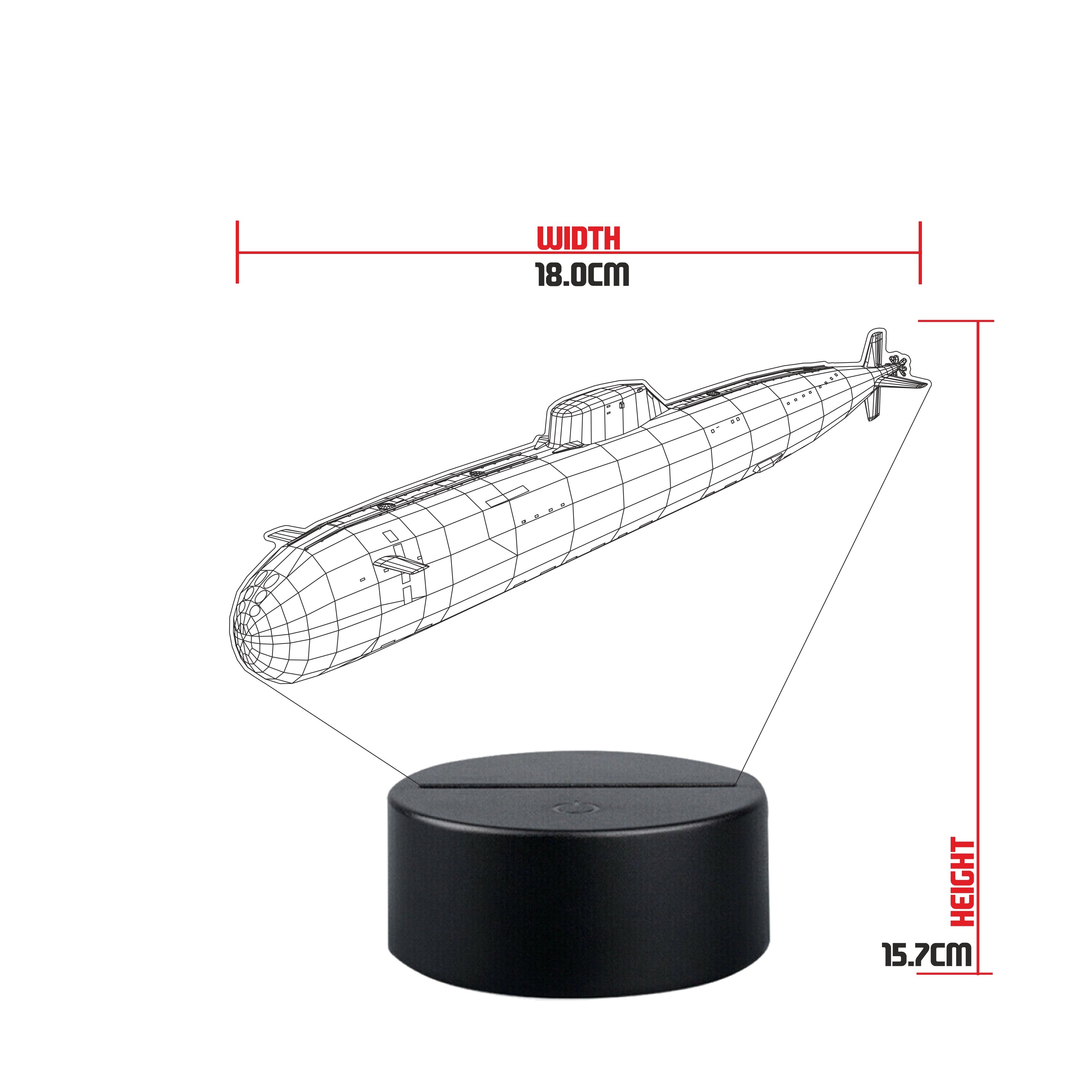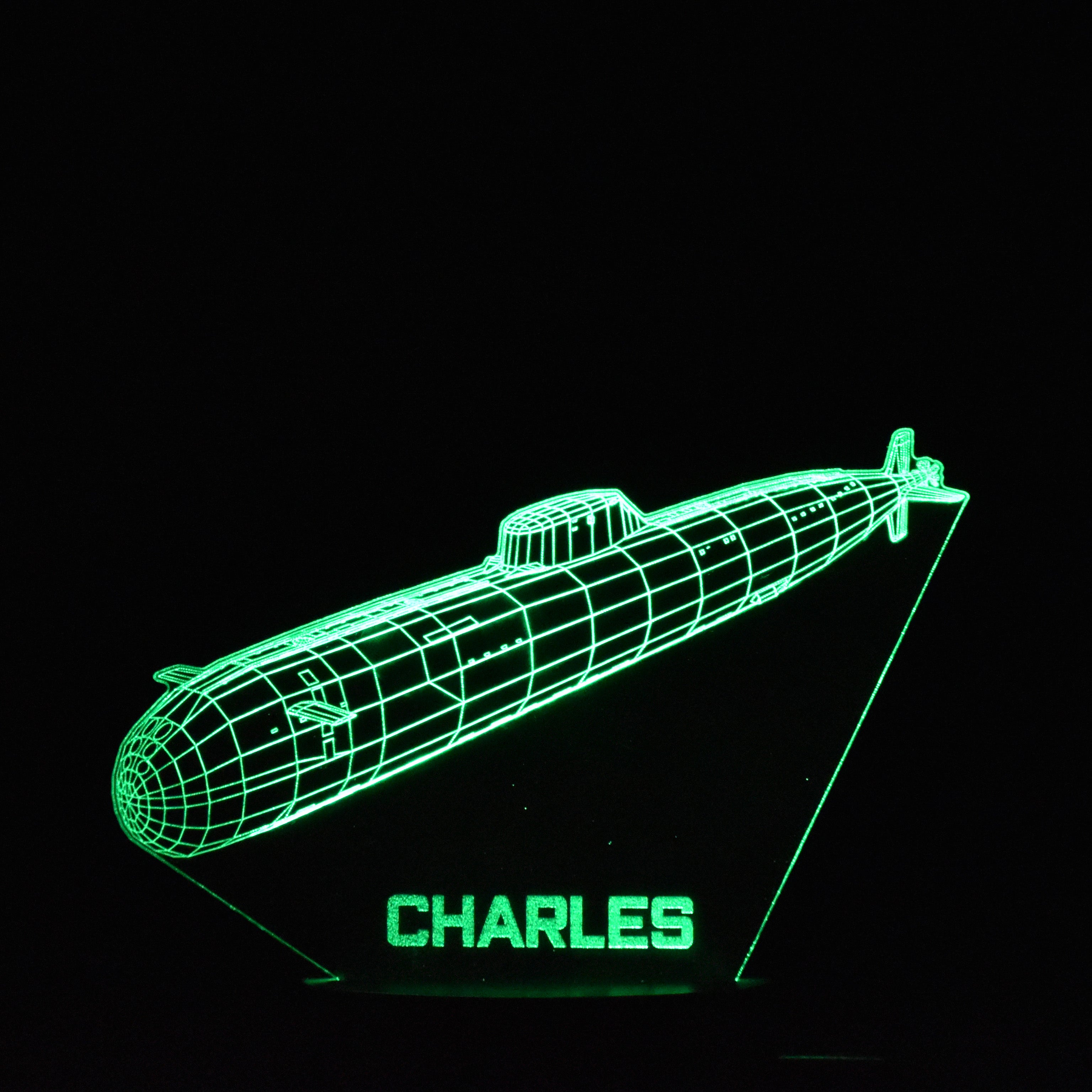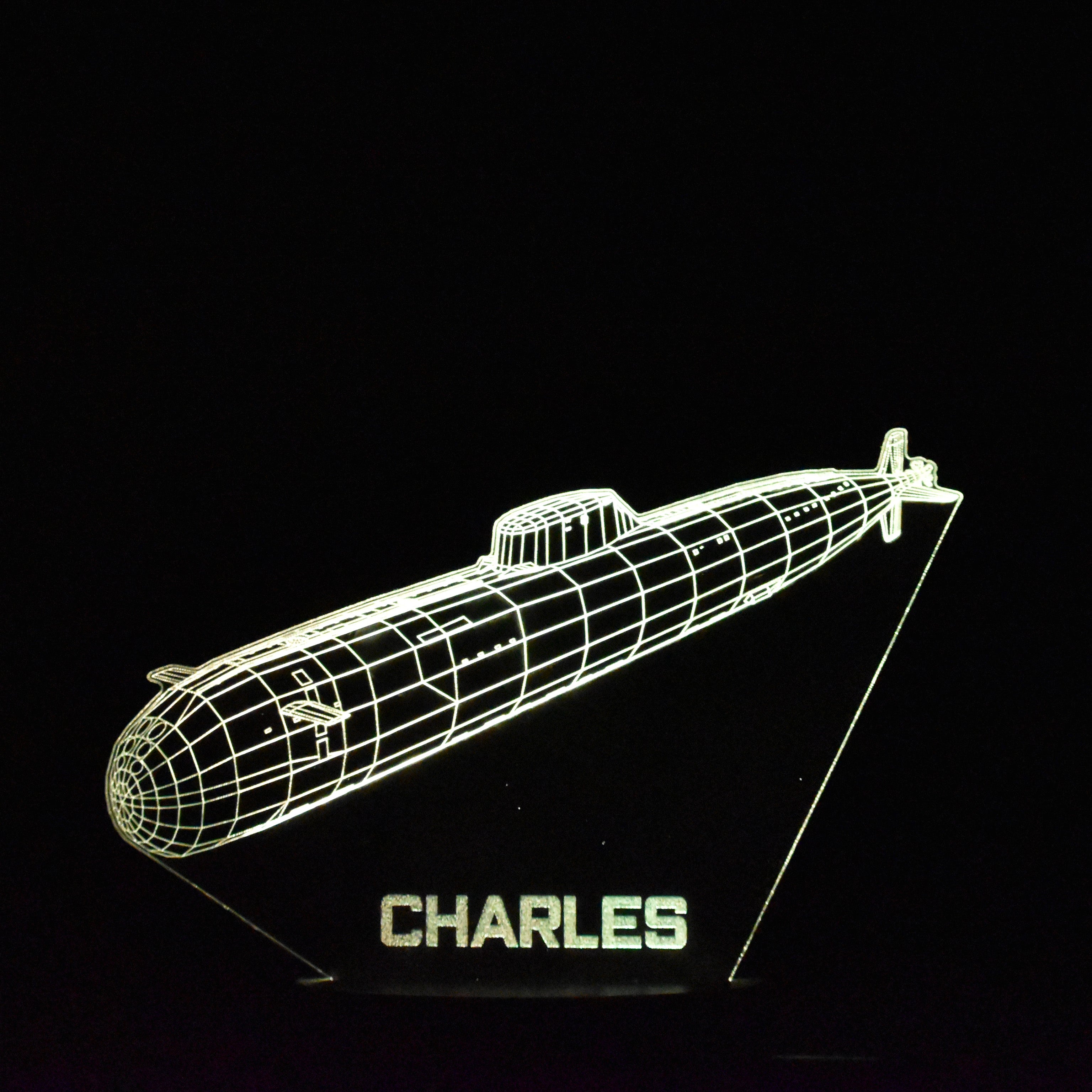 This submarine design laser engraved night light is perfect for lighting any room. It has 16 colour options & different light modes that can be selected using the included remote control. The high quality tough clear acrylic is cut & engraved with our precision laser machine & lit with a circular LED base that can be powered by the micro USB cable included or with 3x AA batteries (not included).