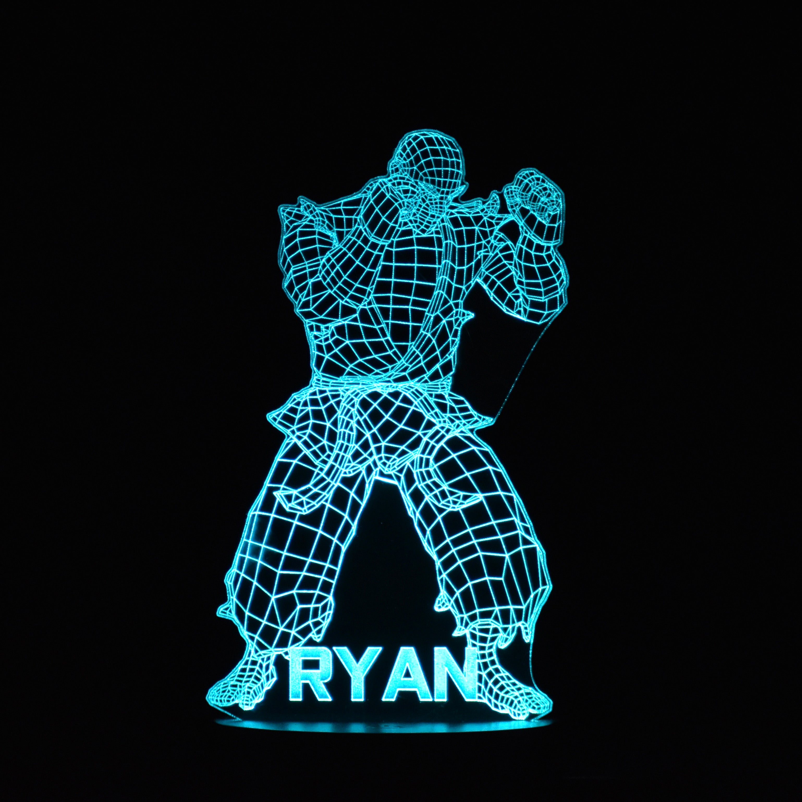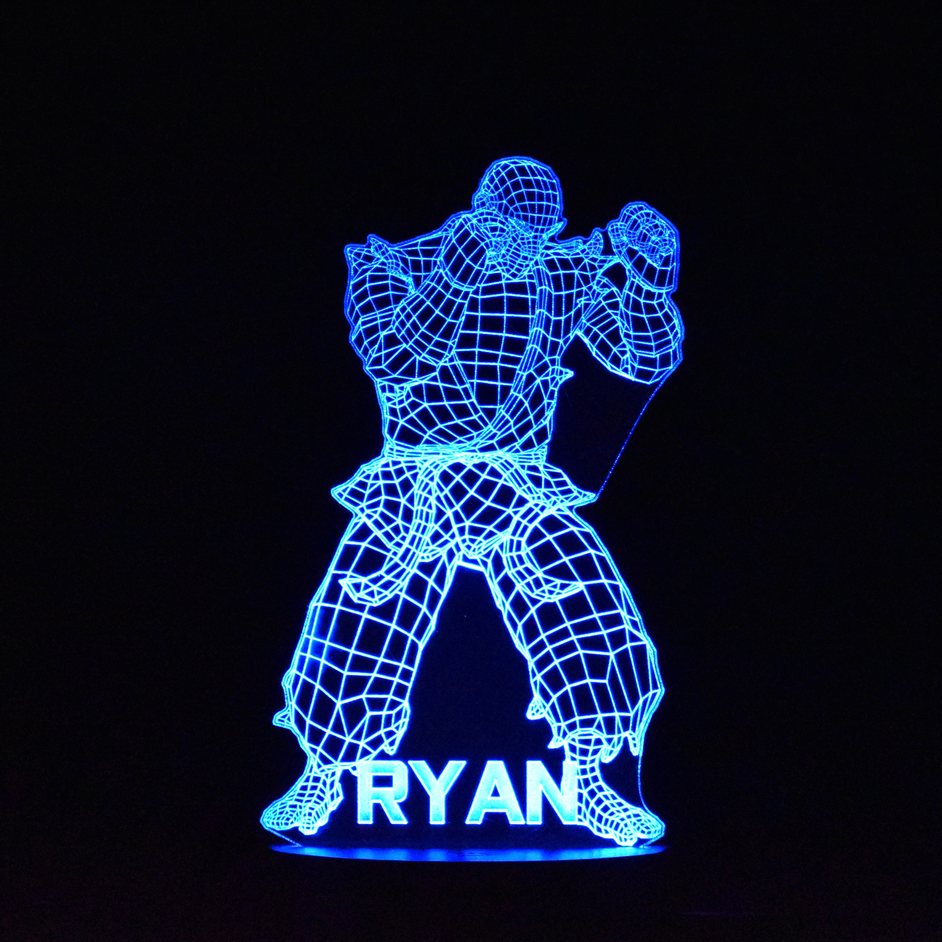 This arcade fighter design laser engraved night light is perfect for lighting any room. It has 16 colour options & different light modes that can be selected using the included remote control. The high quality tough clear acrylic is cut & engraved with our precision laser machine & lit with a circular LED base that can be powered by the micro USB cable included or with 3x AA batteries (not included).