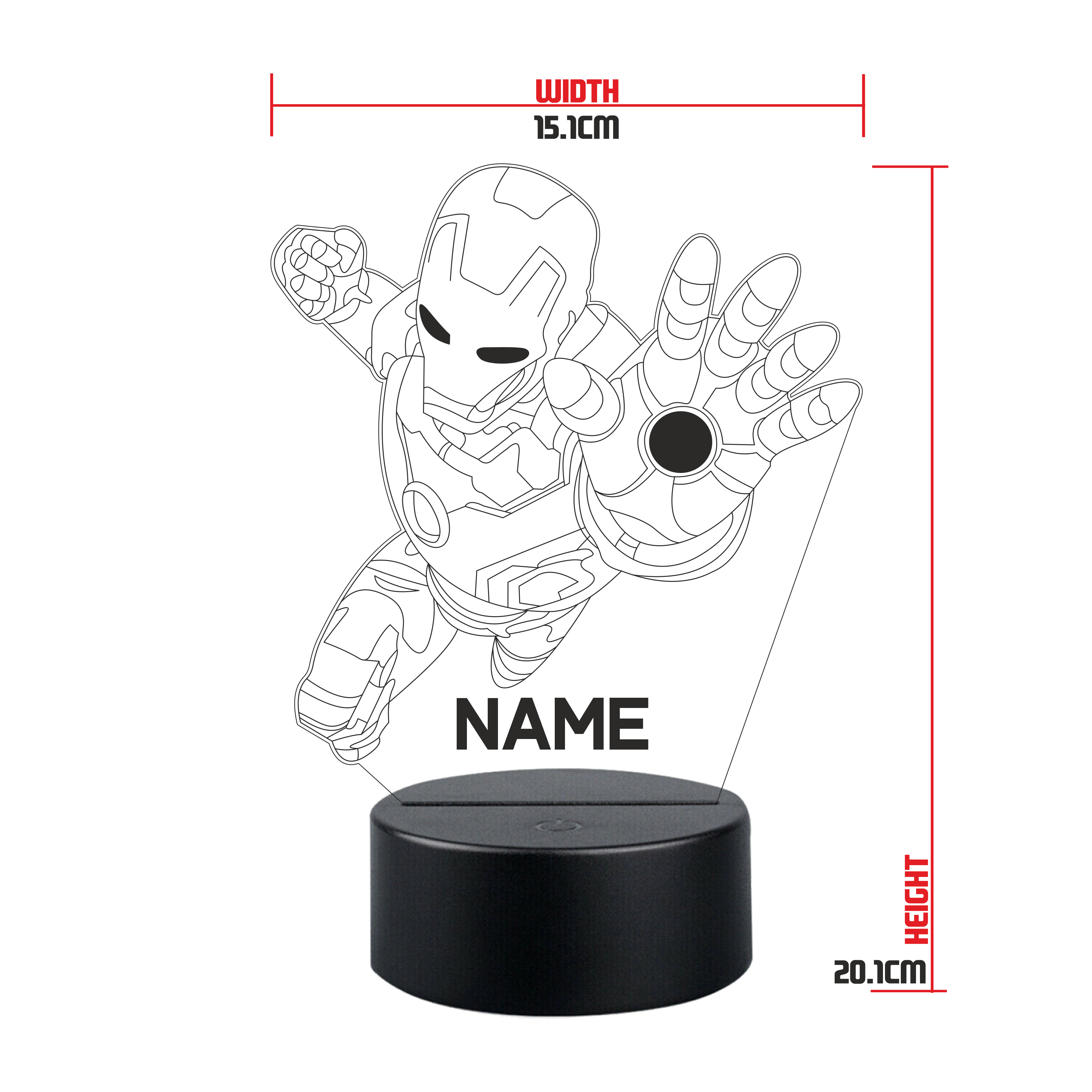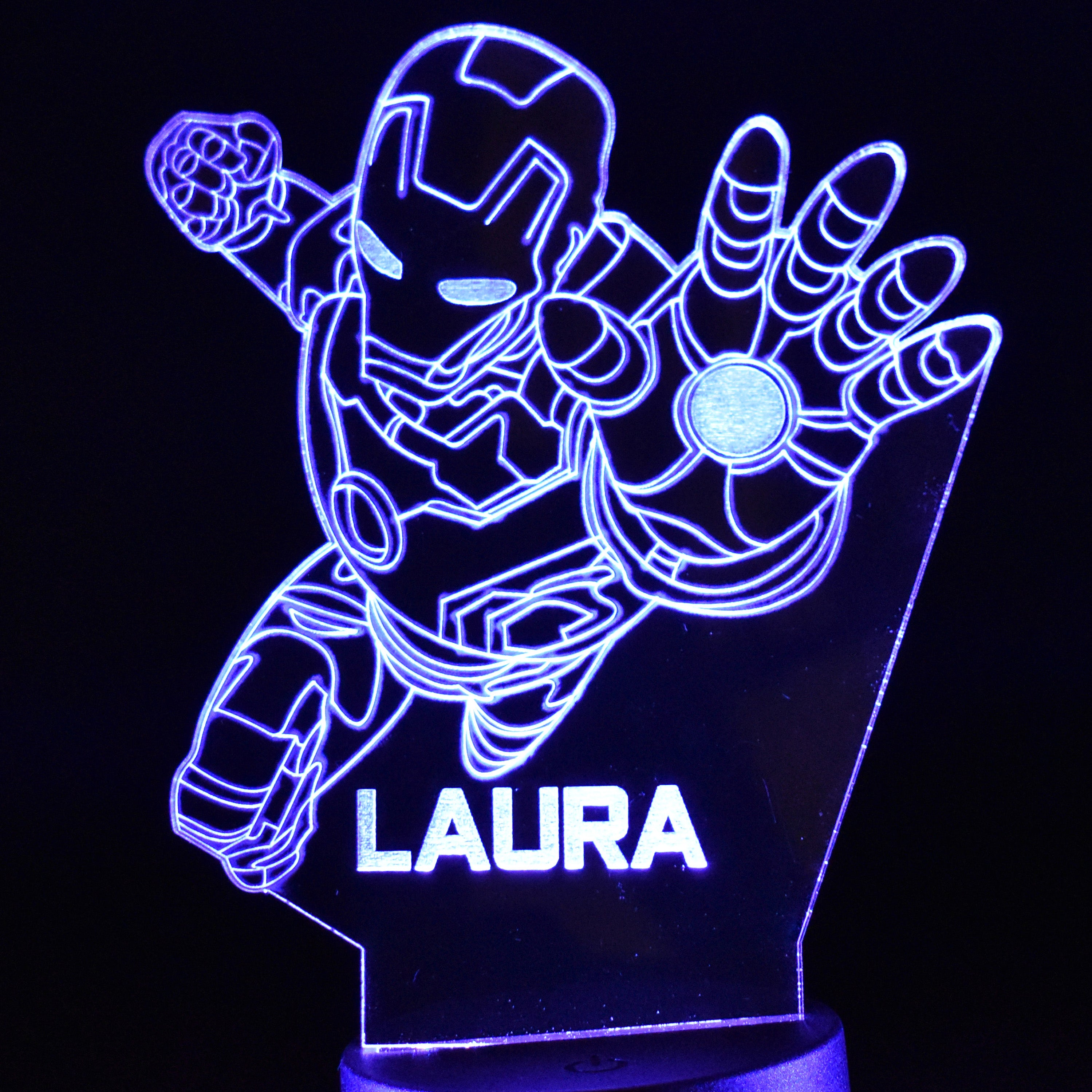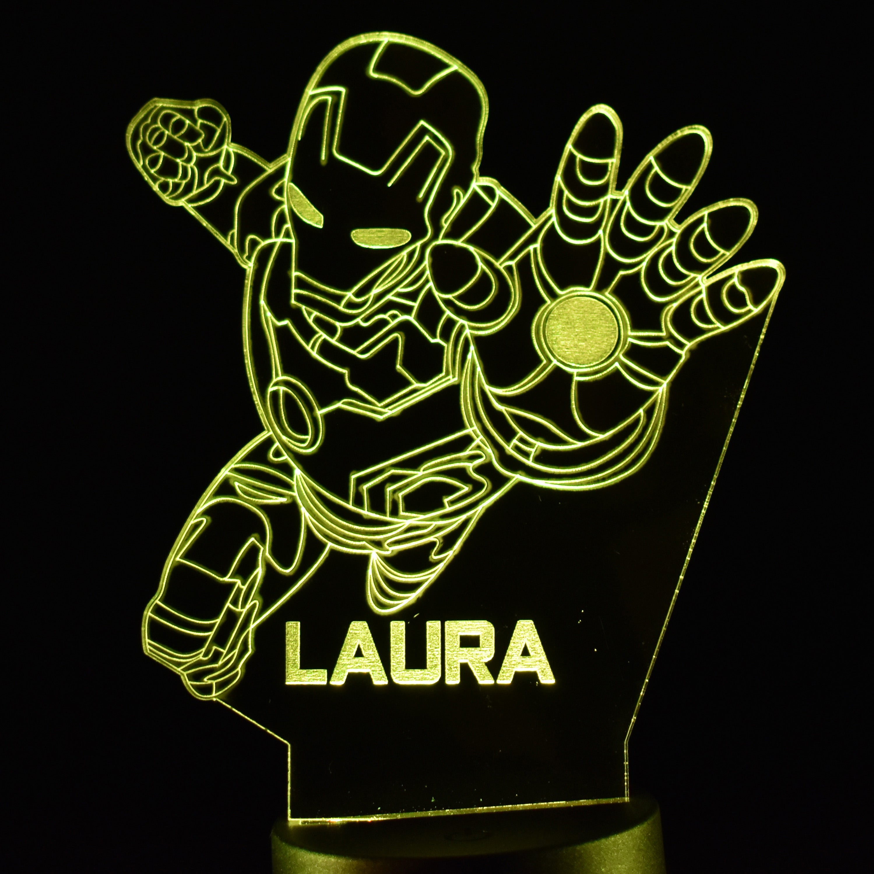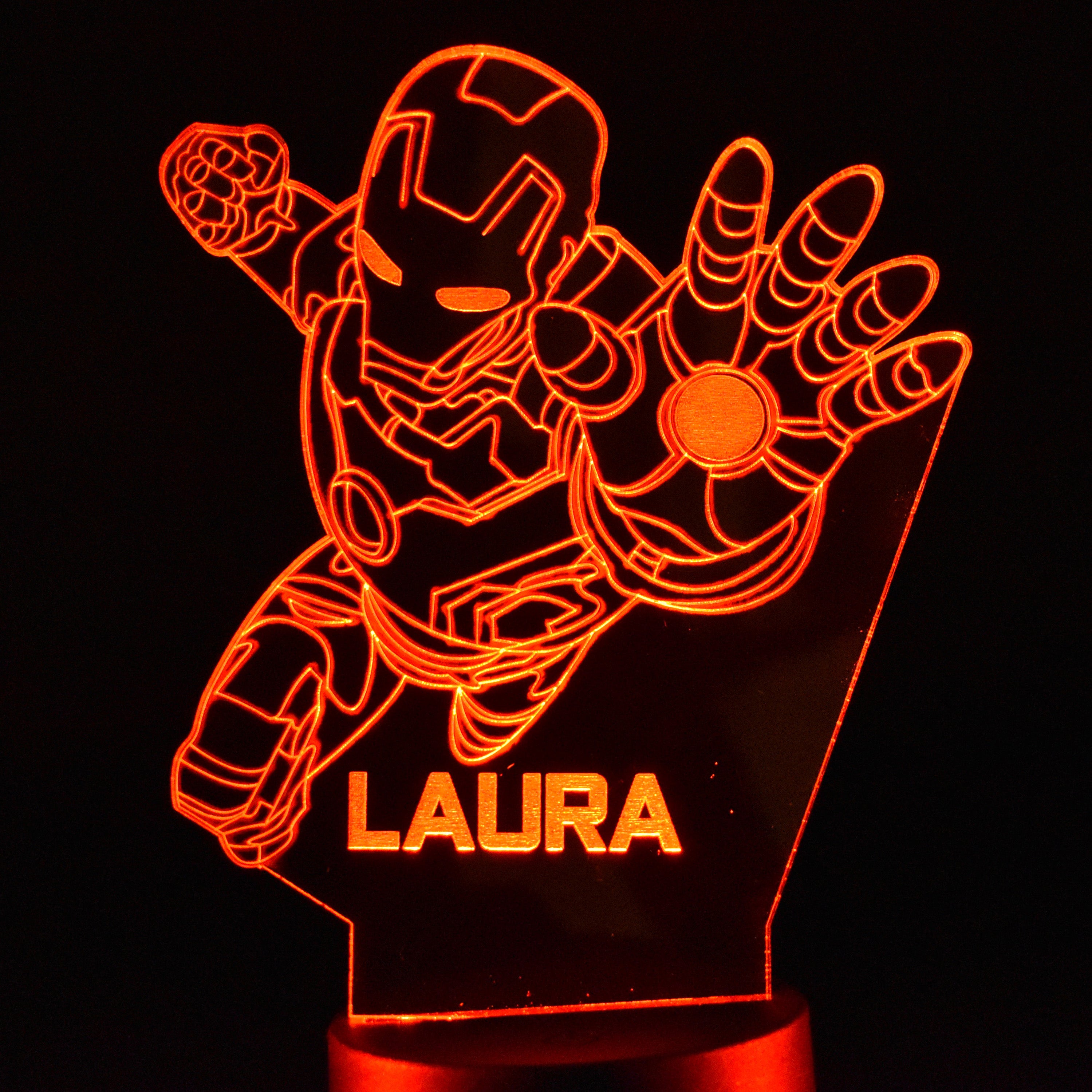 This Iron Man design laser engraved night light is perfect for lighting any room. It has 16 colour options & different light modes that can be selected using the included remote control. The high quality tough clear acrylic is cut & engraved with our precision laser machine & lit with a circular LED base that can be powered by the micro USB cable included or with 3x AA batteries (not included).