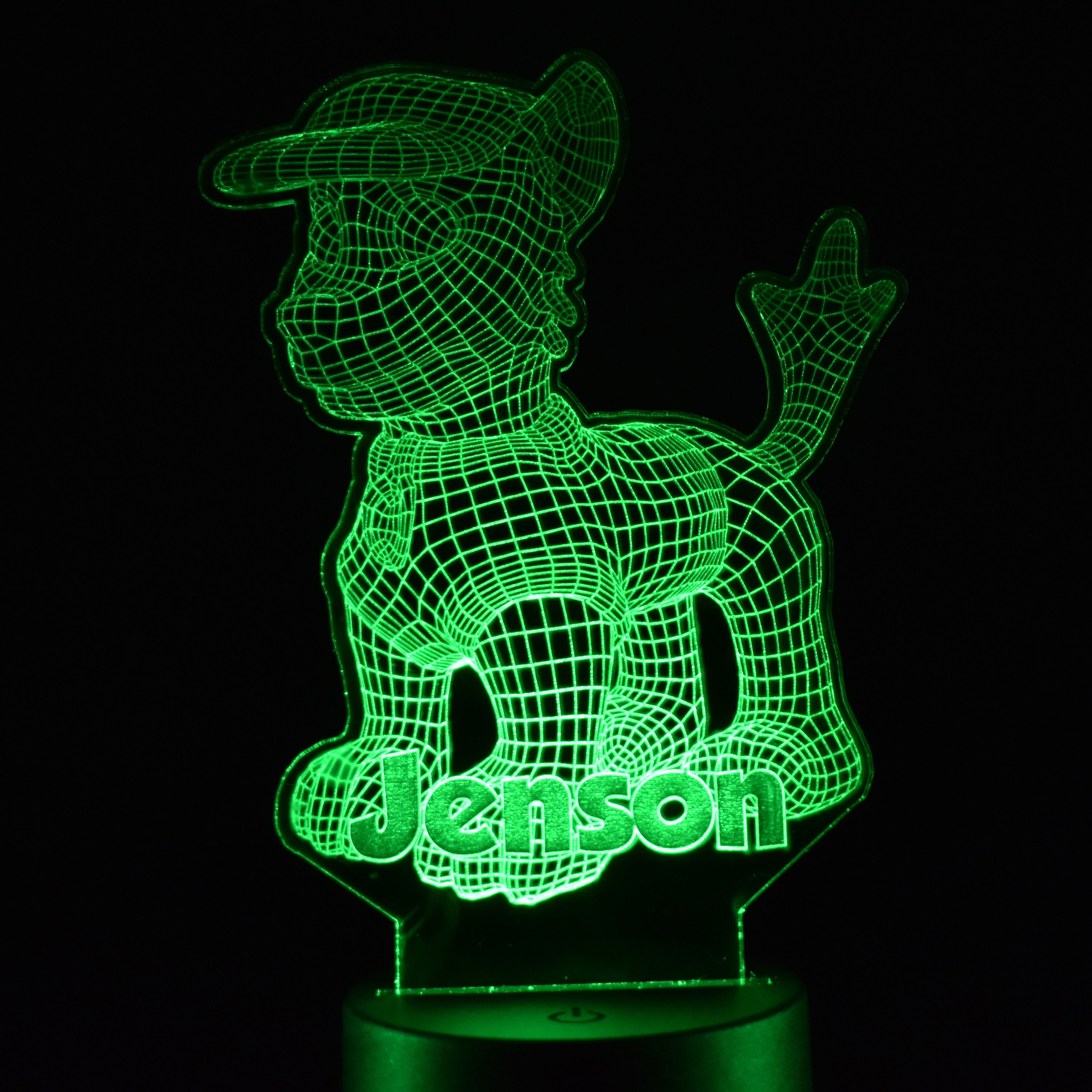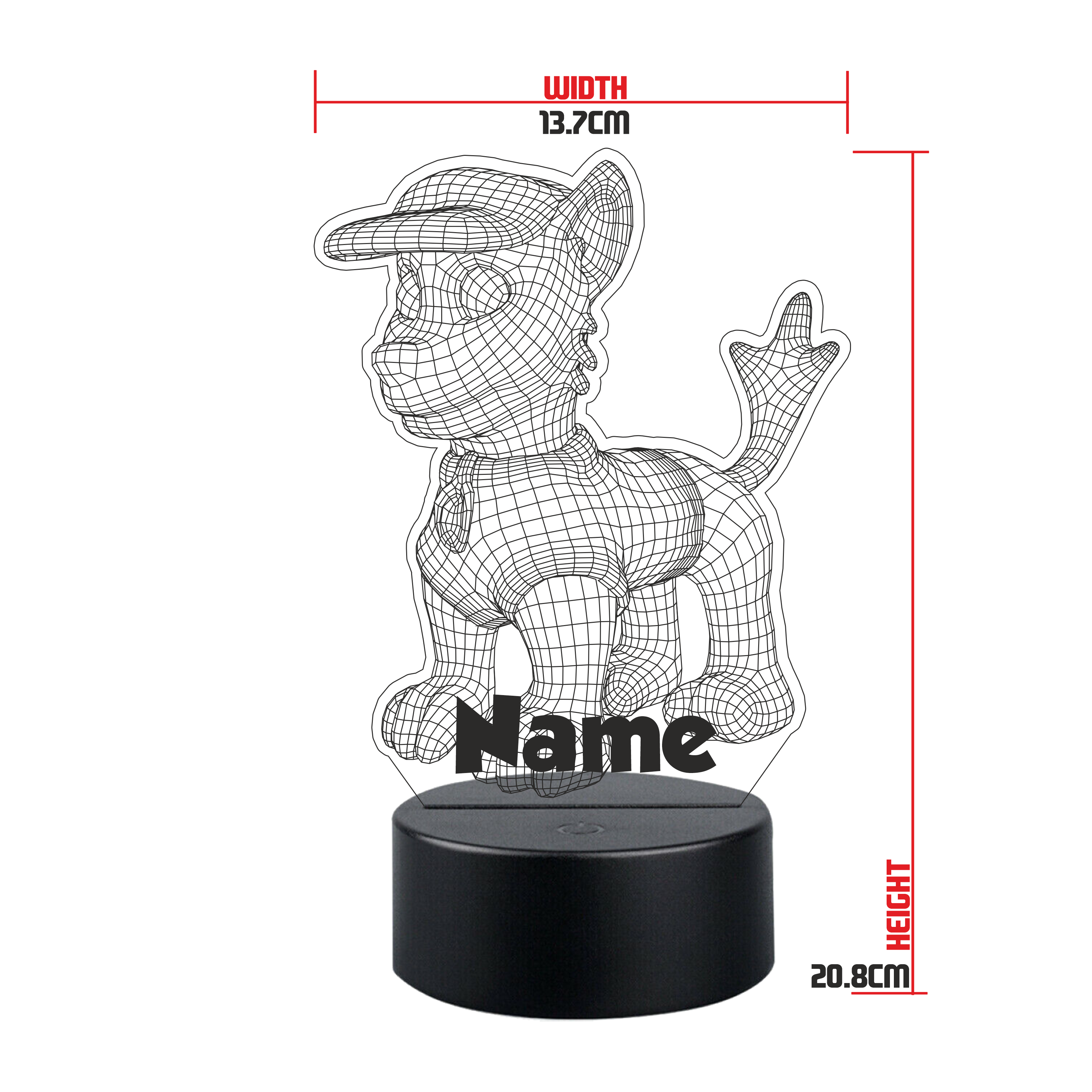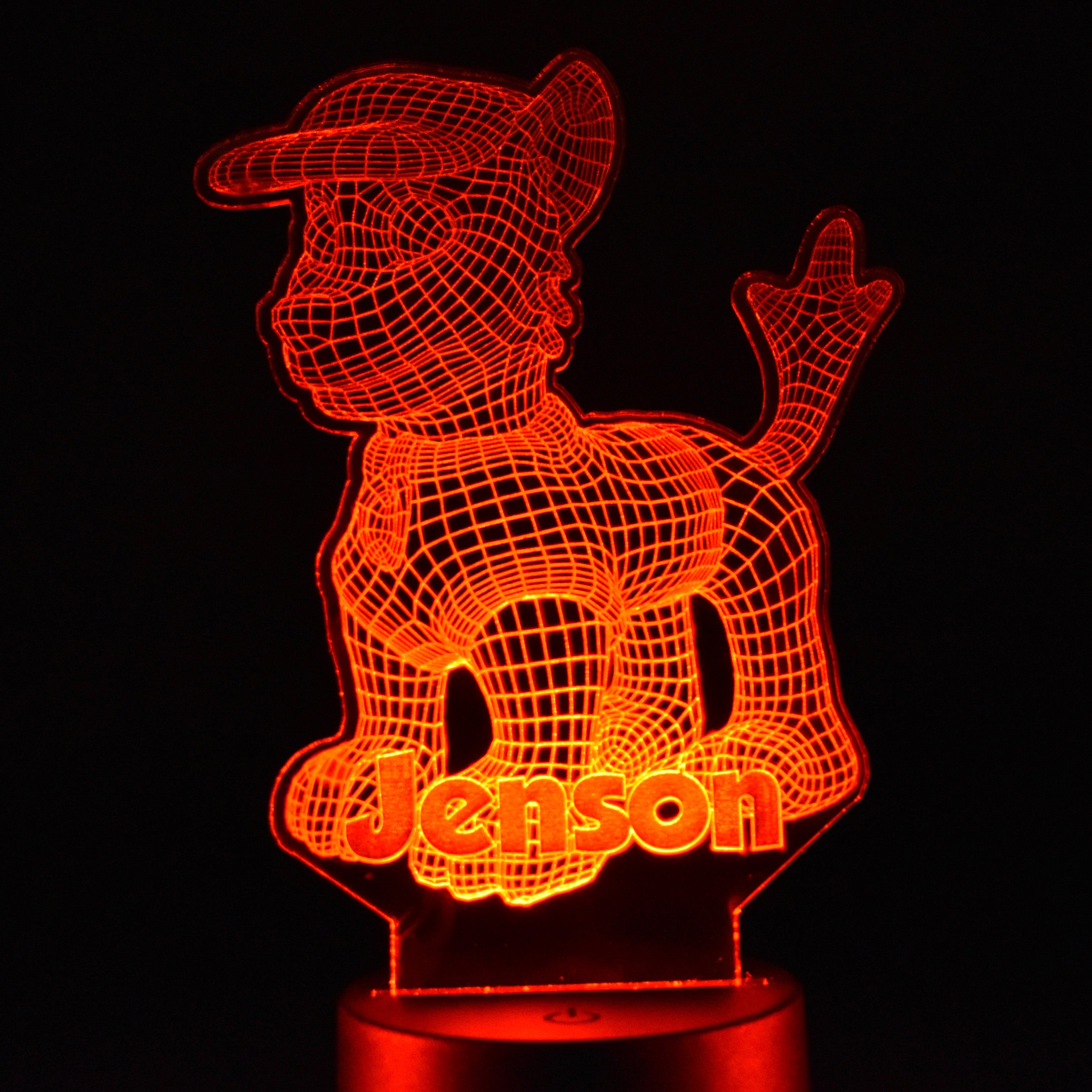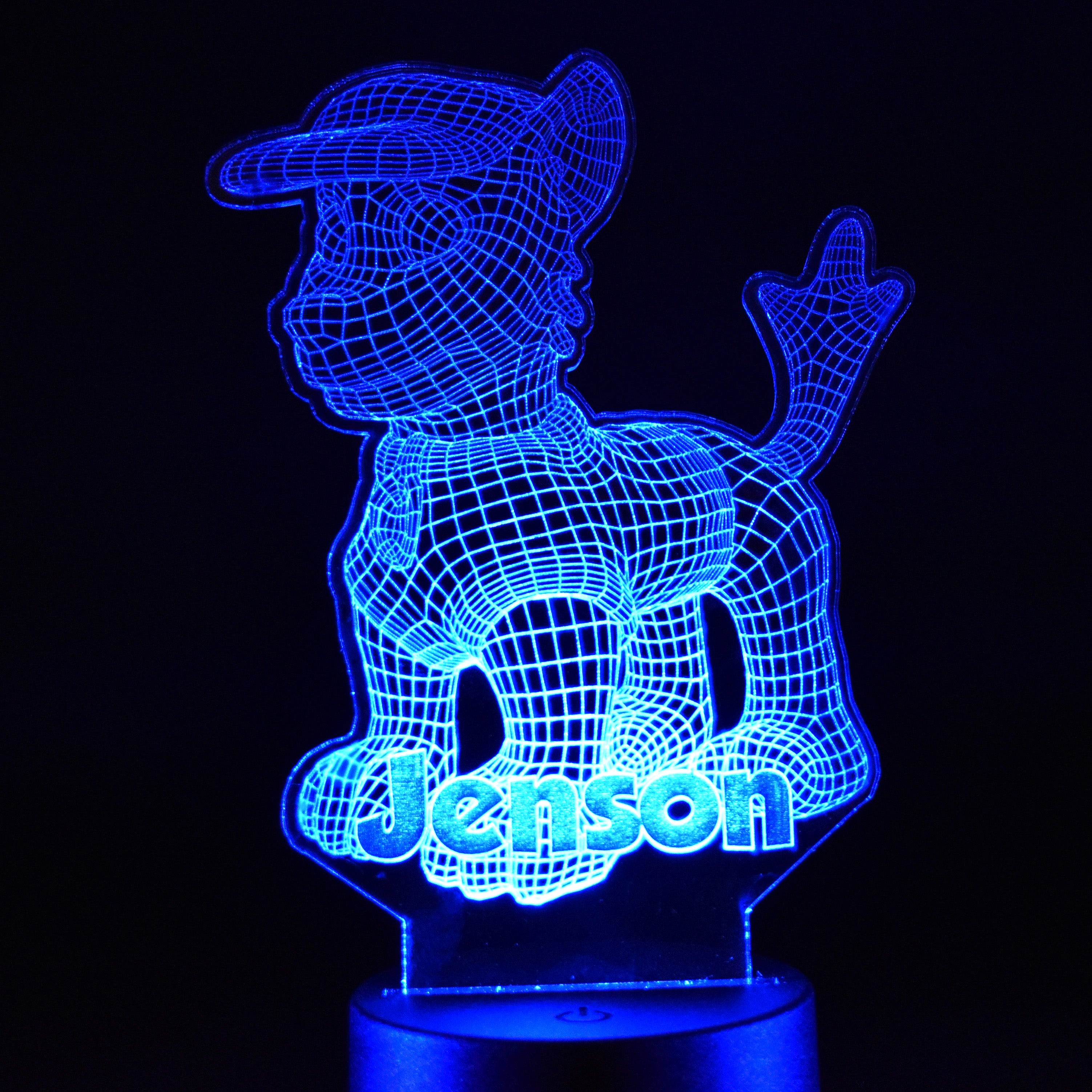 This Paw Patrol design laser engraved night light is perfect for lighting any room. It has 16 colour options & different light modes that can be selected using the included remote control. The high quality tough clear acrylic is cut & engraved with our precision laser machine & lit with a circular LED base that can be powered by the micro USB cable included or with 3x AA batteries (not included).