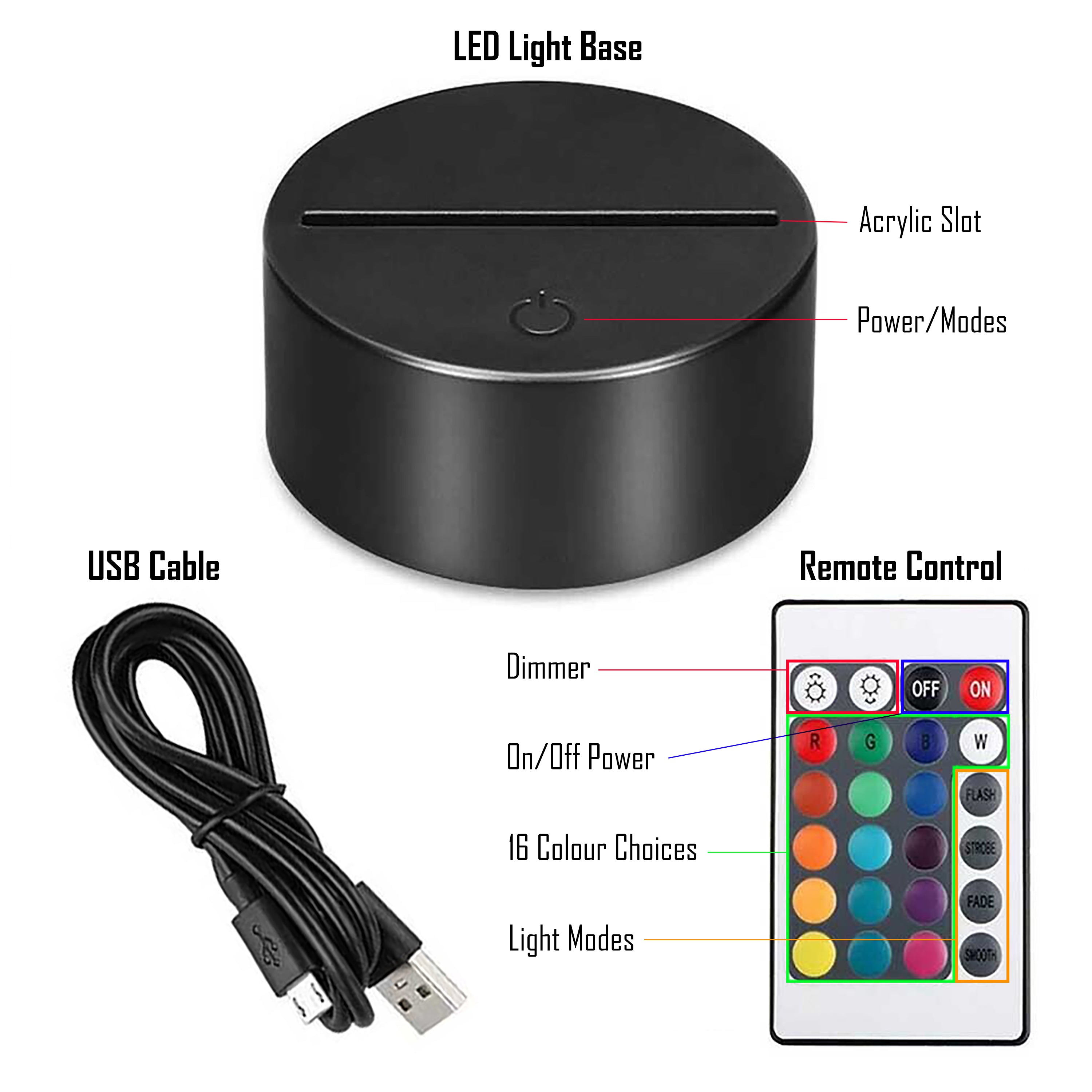 • Acrylic + LED Base + Remote + Micro USB Cable