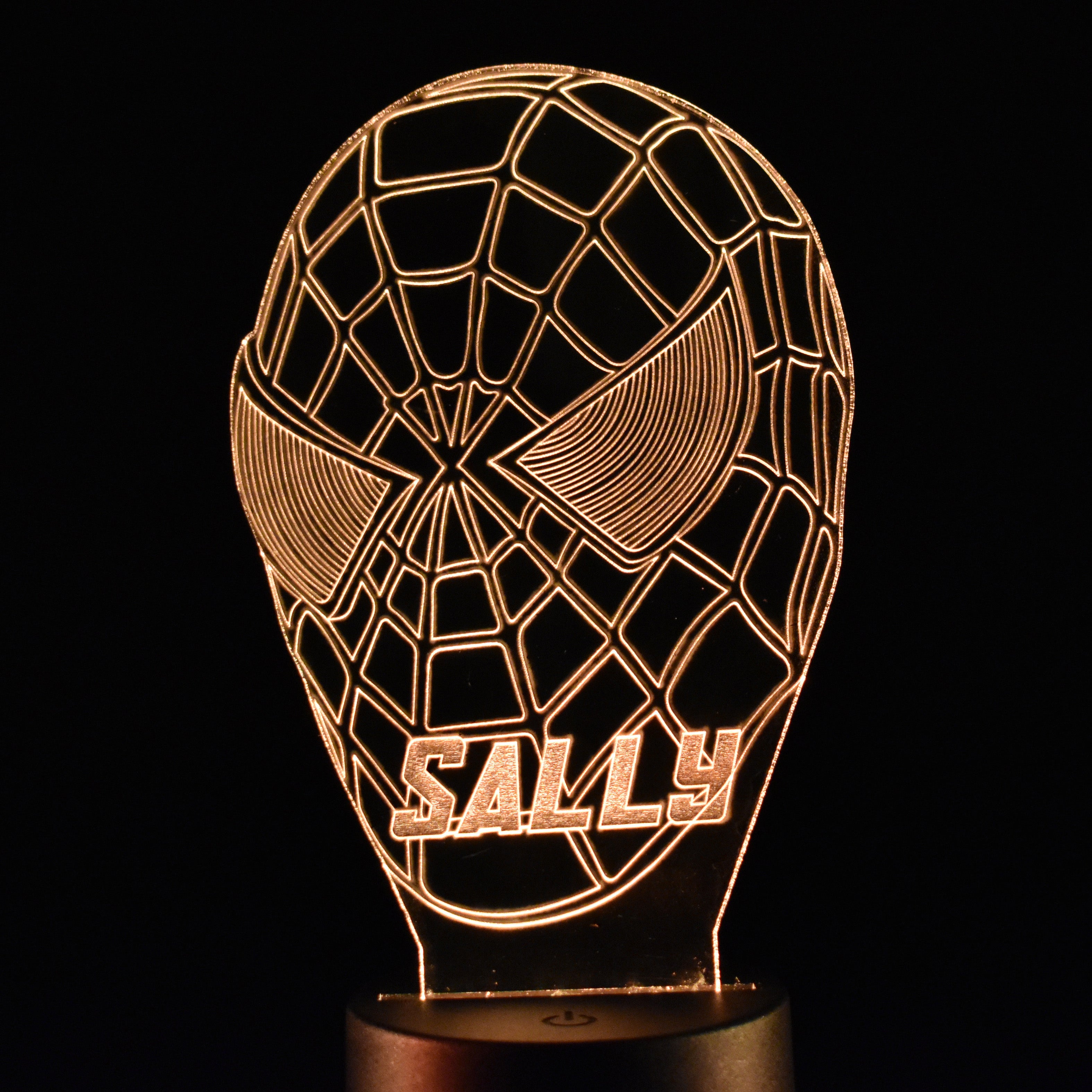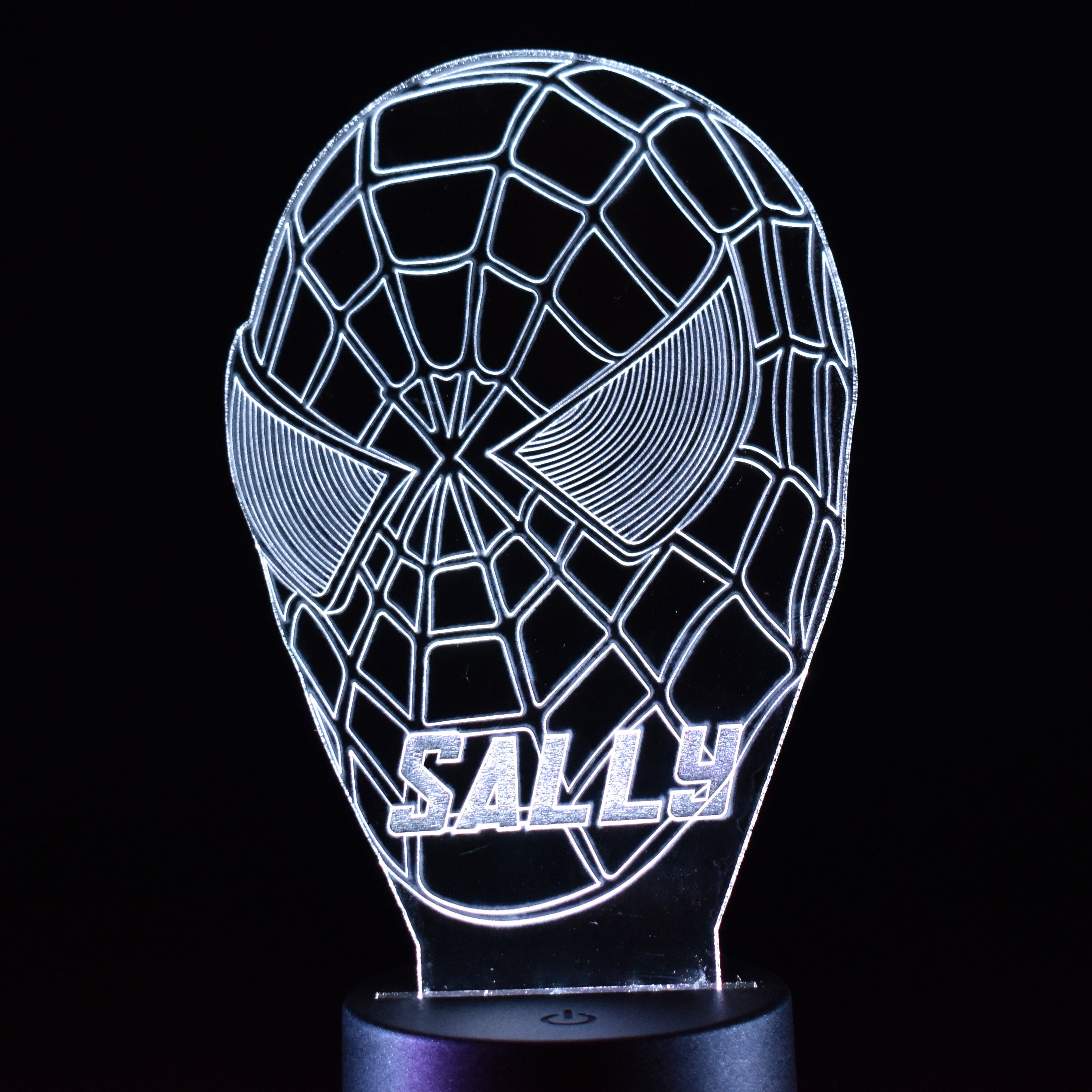 This Spiderman design laser engraved night light is perfect for lighting any room. It has 16 colour options & different light modes that can be selected using the included remote control. The high quality tough clear acrylic is cut & engraved with our precision laser machine & lit with a circular LED base that can be powered by the micro USB cable included or with 3x AA batteries (not included).